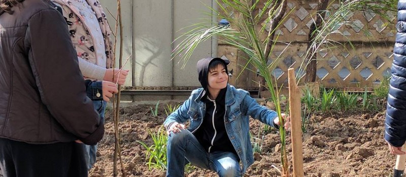 ამ ნაწარმოებების შესწავლის შემდეგ კომაროვის მე-7 მეორე კლასის მოსწავლეებმა გამოთქვეს სურვილი გაელამაზებინათ სკოლის ეზო. თავად შეიძინეს ხეხილის ნერგები და 26 მარტს დამრიგებლის, ლია გოგოხიასა და მოსწავლეთა მშობლების: ეთერ ბიკაშვილის, ლელა გელაშვილისა და ჯამბულ ძინძიბაძის დახმარებით სკოლის მიმდებარე ტერიტორია შეავსეს ხეხილის ხეებით, ასევე, სკოლის წინ სკვერში ყვავილები ჩარგეს. აღსანიშნავია, რომ ამ პროექტში სკოლის მრავალმა სხვა თანამშრომელმაც აქტიურად მიიღო მონაწილეობა. მოსწავლეები წლის განმავლობაში დააკვირდებიან მათი ზრდის პროცესსა და სეზონურ ცვლილებებს. გარდა იმისა, რომ დაიჩრდილება და გალამაზდება სკოლის მიმდებარე ტერიტორია, მოსწავლე უფრო მეტად შეიყვარებს და გაუფრთხილდება თავისი ხელით დარგულ პატარა ნერგს და დაელოდება ნაყოფს. ყოველივე ეს კი ხელს შეუწყობს მოსწავლეებში შრომისმოყვარეობის განვითარებასა და ბუნებისადმი ზრუნვას.