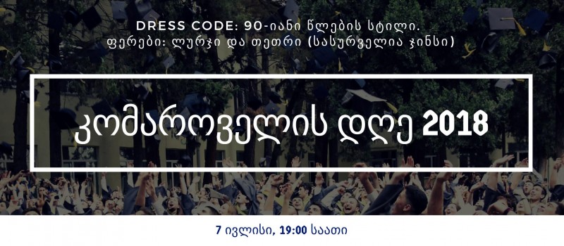 სკოლა-პანსიონი კომაროვის კურსდამთავრებულების საყურადღებოდ!7 ივლისს, 19:00 საათზე გელით "კომაროველის დღის" აღსანიშნავ ღონისძიებაზე, სადაც კომაროვის კურსდამთავრებულებს საშუალება ექნებათ, გაეცნონ სკოლის მიღწევებსა და სერვისებს; იხილონ ნიჭიერი კომაროველების პერფორმანსები; მოუსმინონ სასიამოვნო Live მუსიკას ...